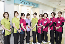 1階に6床(2階病棟管理)・3階に6床(3階病棟管理)のSCU病床を有し、24時間体制で、脳卒中患者の入院受け入れを迅速に行い早期治療に取り組んでいます。脳卒中早期治療は、状態変化が著しい時期であり、身体面と精神面、疾患とに向き合わなければいけない時期です。また、神経徴候の変化は器械でのモニタリングができません。SCUでは患者さん3人に対して看護師1人という看護体制を活かし、より細やかな観察を行い異常の早期発見に努めるとともに、突然の発症で不安の大きい患者さんや家族への心理的支援を行っています。また院内各部との連携の元、早期から患者に適した栄養管理と嚥下訓練、急性期リハビリテーションなどが、早い段階で介入されるシステムが構築されています。